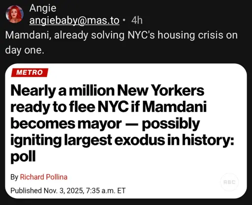 floofloof@lemmy.ca to News@lemmy.worldEnglish · 1 day agoZohran Mamdani wins NYC mayor's race, capping a stunning ascentplus-squareapnews.comexternal-linkmessage-square53linkfedilinkarrow-up1484arrow-down11