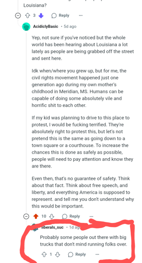 However, in the context of it following a terrorist attack in the same state a few months earlier where a truck was used to do the same thing, and in combination with the other comments in the post, and the user’s account history, it was definitely out of line. It says a lot it took that long for the mods or reddit to do anything, considering Reddit’s overreaction to so many other comments and posts that are clearly non-threatening.