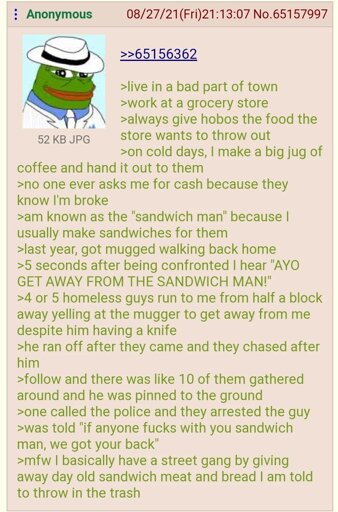arrow-up11.08Karrow-down1imageAnon is the Sandwich Mansh.itjust.works🍹Early to RISA 🧉@sh.itjust.worksM to Greentext@sh.itjust.works · 6 months agomessage-square46linkfedilink