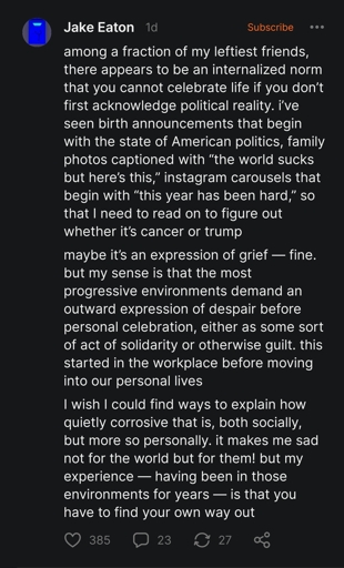 After a while, though, it can be seen as performative. But let’s give people time to grieve if they need it.