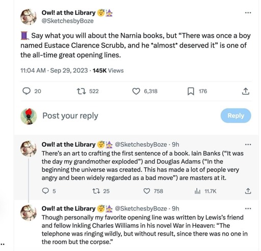 All three quotes are great, how you can captivate a reader just with one sentence, all three do this perfectly.