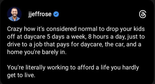 George Jetson only worked 2 hours a week, and he could support a family of four plus a robot maid. Today’s families have two people working two jobs with the same hours as 100 years ago, and they can’t afford to buy a house.