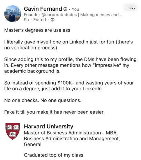 arrow-up11.01Karrow-down1imageCheaper than student loans!lemmy.worldThe Picard Maneuver@lemmy.world to LinkedinLunatics@sh.itjust.works · 7 months agomessage-square188linkfedilink