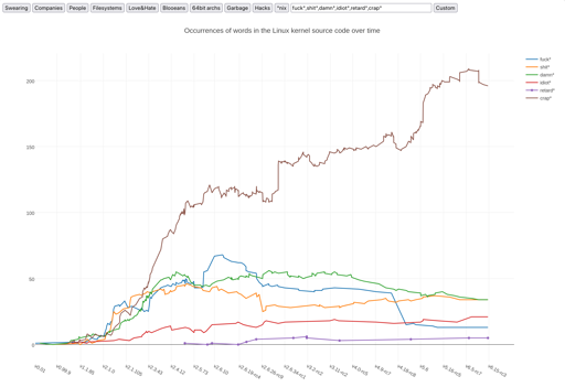 arrow-up159arrow-down1imageOccurences of swearing in the Linux kernel source code over timelemmy.worldTheTwelveYearOld@lemmy.world to Linux@lemmy.worldEnglish · 6 months agomessage-square10linkfedilinkfile-text