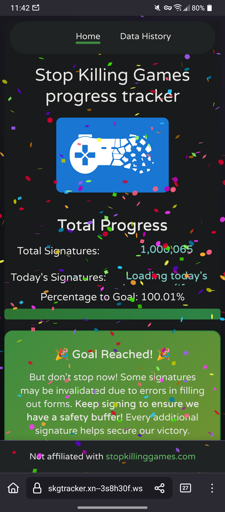 To get the initiative onto the EUs agenda so it has the chance to become EU law, it has to both reach 1 million signatures total and minimum thresholds in at least 7 countries. Now both of those goals have been reached. But that’s no reason to stop signing! Some signatures will get thrown out in the validation phase because the signee made a mistake. So keep signing and show the world just how many people are in favour of saving videogames.