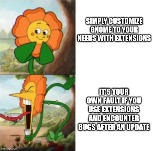 Either somehow every GNOME user is a saint and everyone else is just an asshole, or GNOME is laughably bad and every new release is also bad. It’s either of those two.