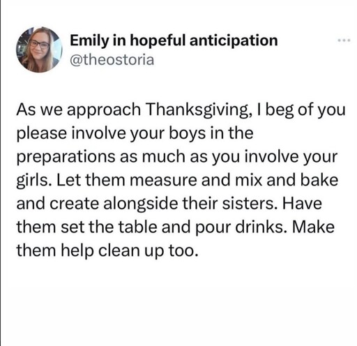 It’s not just family and upbringing it’s kind of enforced by basically everyone a little bit. House is a mess - oh (fem partner) must be struggling poor dear. The state of the house just sits in a corner of their mind all day everyday like a weight dragging them down like the telltale heart.